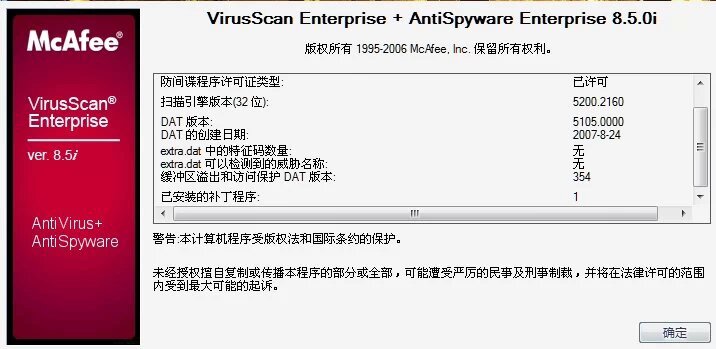 杀软 McAfee.VirusScan.Enterprise.v8.5.0i.Patch1.Incl.Hotfix.vHF348674