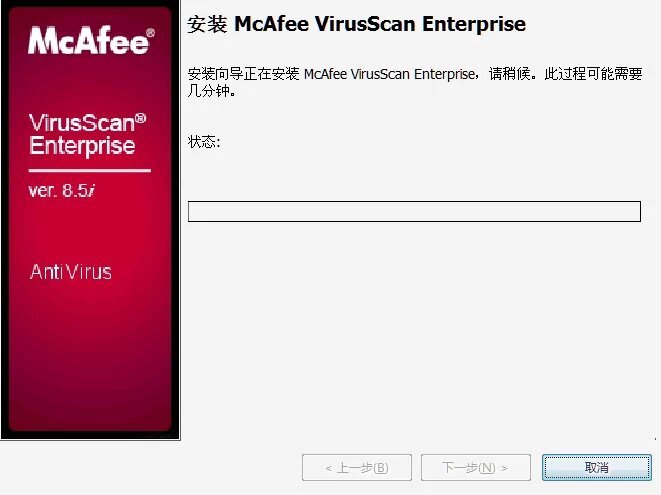 此mcafee8.5I全集成版.安装包共59.5MB,总共安装完毕不过2分钟多.无须断线安装.