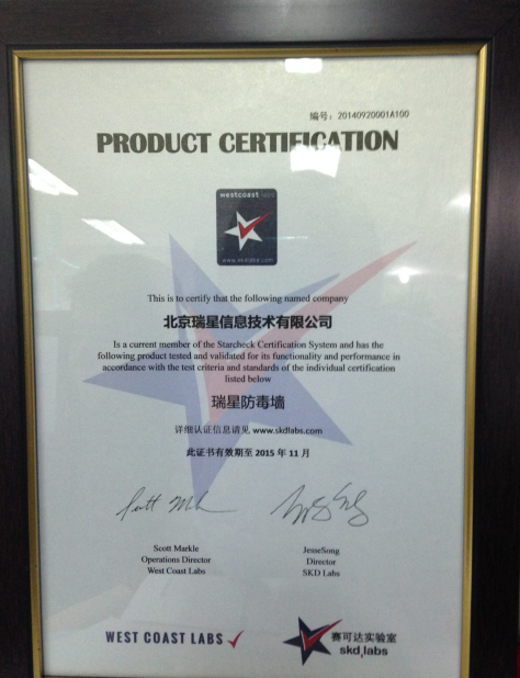 [瑞星] 瑞星防毒墙RSW-9300荣获西海岸测试认证[复制链接] |
