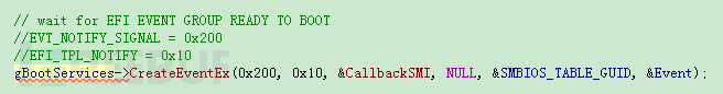 EFI程序开发必须要有.inf定义文件,定义应用名,guid,程序类型(应用或驱动),入口点,源码文件,依赖库等,其中GUID是模块的标识,bios系统是以GUID来标识程序。 【感染阶段】 2、chipsec.efi模块功能 .inf部分定义: INF_VERSION = 0x00010005 BASE_NAME = chipsec FILE_GUID = C2AA29A2-065C-4FC5-BE01-7FAA761EAA7E MODULE_TYPE = UEFI_APPLICATION VERSION_STRING = 1.0 ENTRY_POINT = ShellCEntryLib1)检测U盘中当前目录是三个模块是否存在,如果不存在直接退出程序 2)检测cpu芯片类型,初始化spi总线得到SPI_obj,可以进行spi进行各种操作, 得到spi MMIO(内存映射I/O)的地址,如下,方便下面读写bios芯片 3)然后关闭bios写保护,以便刷bios: 4)进入界面选择功能,有:安装Bios Rootkit,卸载Bios Rootkit,检测Bios Rootkit 5)选择安装Bios Rootkit,先备份原先的bios到\\temp\\bios.bin下, 读出bios到buffer: 保存bios到bios.bin: 6)读出bios后,在buffer进行bios结构解析,然后改写bios,插入.mod模板。 Bios文件系统是树状,FD相当于windows下整个硬盘,FV即分区,File以GUID标志,Section里存储实际的数内容,相当widnows下的文件概念,如下图: 层层解析后,找到第一个File: 这时File可能是压缩的,如果是压缩的,分别用lzma,EfiDecompress,Tiano尝试解压。解压后,在File最后的section里写分别写入ntfs.mod,rkload.mod和dropper.mod: ntfs.mod和rkloader.mod是uefi驱动文件(FFS文件结构),需要校验和,确保程序能正常运行。 接着,以原来的压缩格式压缩File,构造成一个植入rootkit的bios: 7)把植入rootkit的bios系统刷到bios芯片上 擦除芯片上所有数据: 刷入新bios系统: 到这里,完成Bios Rootkit注入。 【Bios Rootkit执行阶段】 3、rkloader.mod模块功能 rkoader.mod是bios驱动程序,FFS结构文件头如下。 typedef struct {EFI_GUID Name;EFI_FFS_INTEGRITY_CHECK IntegrityCheck;EFI_FV_FILETYPE Type;EFI_FFS_FILE_ATTRIBUTES Attributes;UINT8 Size[3];EFI_FFS_FILE_STATE State;UINT32 ExtendedSize;} EFI_FFS_FILE_HEADER2;紧跟着FFS结构头后PE是结构。rkloader.mod功能主要是创建事件,调用droper.mod模块,UEFI下的事件,相当异步的事件通知,当事件触发时,可中断去处理例程。 .inf部分定义: [Defines] INF_VERSION = 0x00010005 BASE_NAME = rkloader FILE_GUID = f50258a9-2f4d-4da9-861e-bda84d07a44c MODULE_TYPE = UEFI_DRIVER VERSION_STRING = 1.0 ENTRY_POINT = _ModuleEntryPoint1)初始化得到全局服务指针,gBootServices 2)创建事件,把事件放到FIFO队列去,高优先级执行 3)加载dropper.mod,并执行。 4、dropper.mod模块功能 dropper.mod是uefi应用程序,资源里面包含windows操作系统下的scounte.exe、solier.exe和elite的远控木马,并用特定的字符串标识资源,如下图。Droper.mod功能是把三个远控木马放到windows操作系统自启动项里,所以当前操作系统启动起来时,远控木马得到执行。 .inf 部分定义: [Defines] INF_VERSION = 0x00010005 BASE_NAME = fsbg FILE_GUID = eaea9aec-c9c1-46e2-9d52-432ad25a9b0b MODULE_TYPE = UEFI_APPLICATION VERSION_STRING = 1.0 ENTRY_POINT = UefiMain1)检测agent是否已经安装过。 Agent安装后,会设置一个全置标志GUID,如下图,如果这个全局变量存在,就是已经安装过Agent了,就不会重复安装。 2)解析FFS结构,在dropper.mod通过GUID查找EFI_SECTIOM_RAW类型数据,这数据包含scout.exe,soldier.exe和elite文件数据。 读取数据到buffer: GUID: 3)安装Agent到window启动项 这个步聚是最关键的,UEFI bios如何写数据到硬盘?读取文件需要一个协议:EFI_SIMPLE_FILE_SYSTEM_PROTOCOL,simplefilesystem.h文件里定义这个协议的id,如下,通过这个id可以对硬盘进行读写。 extern EFI_GUID gEfiSimpleFileSystemProtocolGuid;