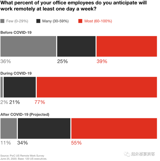 …毕竟根据PwC对120位美国企业CEO的调查,疫情结束后他们将更加习惯于员工每周至少一天远程办公。