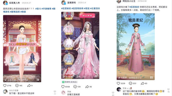 第一个大类是游戏行业的广告。从PC时代浏览器右侧的游戏广告开始,宫廷变装、拯救美女的情节套路、人物形象就没变过,用户在评论区这样吐槽,“快俩月了还没升到庶妃”。玩家想像广告宣传中一样,换到好看的衣服、解锁剧情“睡”到皇帝,必须要变身氪金玩家,有网友在评论区提示,“里面根本不长这样,别下载”。