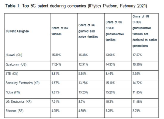 截止2020年底,中兴通讯拥有8万余件全球专利申请,持有有效授权专利约3.6万件,其中芯片专利申请4270件,授权超过1800件。根据国际知名专利数据公司IPLytics 2021年2月报告,公司向ETSI披露5G标准必要专利声明族位列全球前三。
