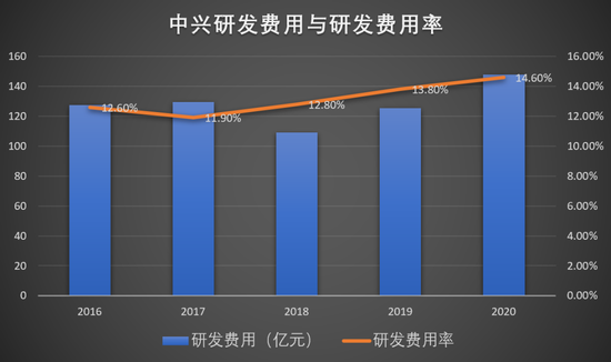 前文已经说过,只有坚持高强度的研发投入,才能确保产品技术的领先性。中兴在自主研发创新方面已经取得了瞩目的成就,目前每年的研发投入也超过一百亿。