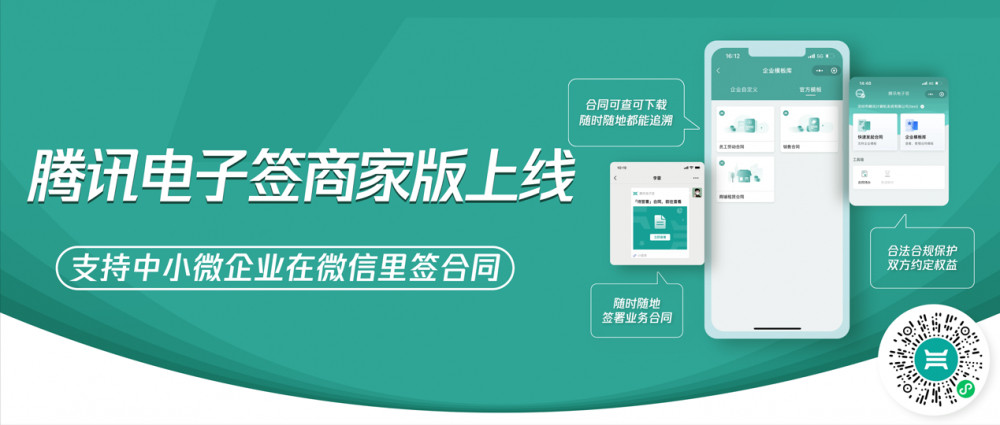 12月16日,腾讯电子签上线商家版功能,让中小微企业可通过腾讯电子签小程序,快速发起、签署、管理各类合同,进一步提高中小微企业的文件的签署效率、降低文件邮递及管理成本。