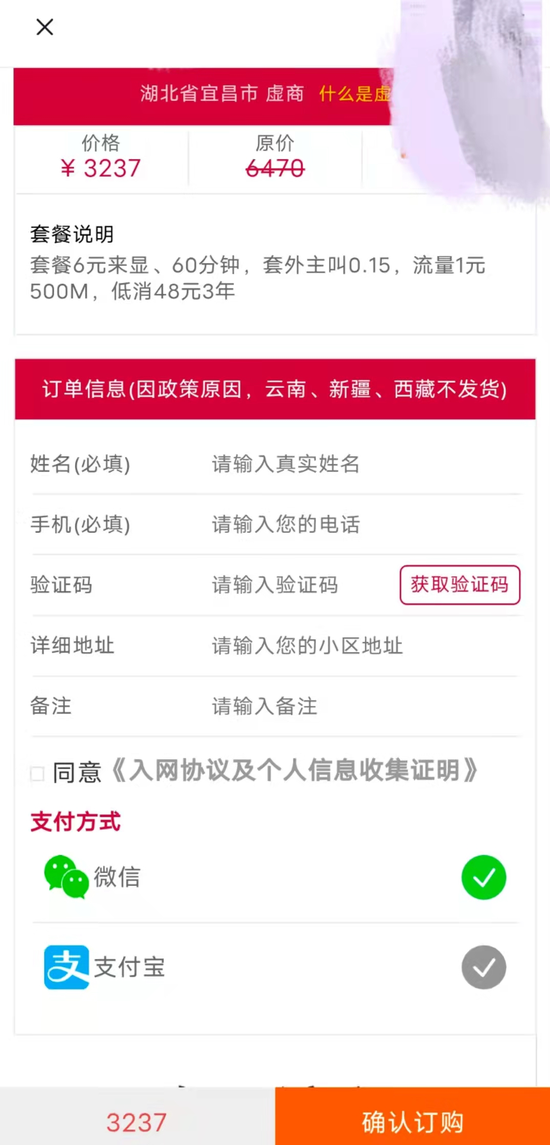 小杨就有这样的经历。小杨告诉Tech星球,他此前曾在自己快递上看到了贴有领取手机靓号的二维码,当时他要换手机号,正好可借此机会去换一个手机靓号,于是就拿起手机去扫描快递单上的二维码,然后进入了选号界面,在选中了心仪的手机号后,按照订单流程,不假思索地填上了自己的身份信息,并付了3000多元。