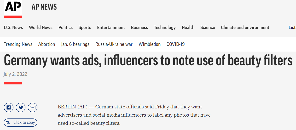 [IT业界] 德国多地官员呼吁立法,要求网红发图注明是否用美颜[复制链接] |