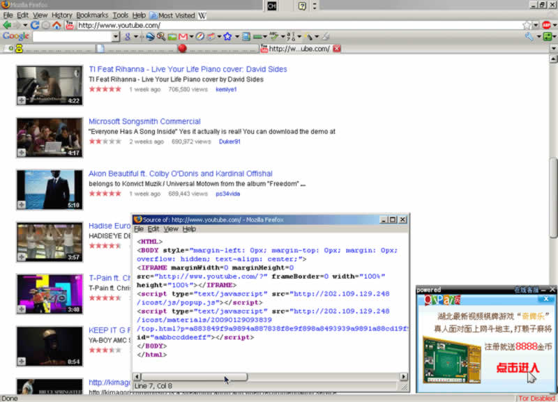 [已解决] 请大家帮忙看看关于电信在网页里插入广告的情况.![]() |